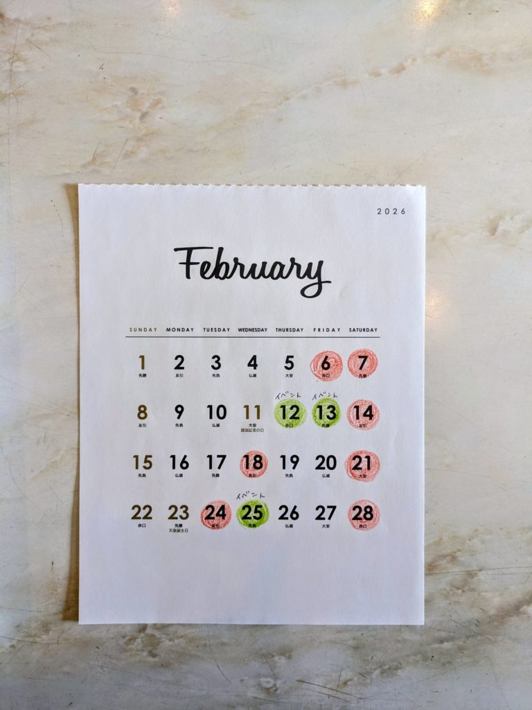 2月も心地良い時間を提供していきますのでよろしくお願い致します。